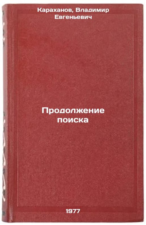 In Russian. Karakhanov, Vladimir Evgenievich. Continuation of the search. Moscow: Mologordiya, 1977. All images are for identification of editions only. Several books of the same edition may be available. Please feel free to request photos of available books. SKU7647099