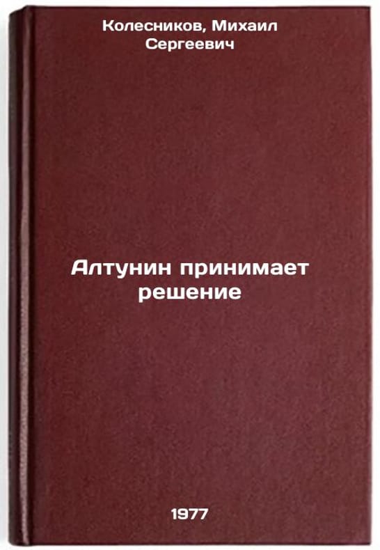In Russian. Kolesnikov, Mikhail Sergeevich. Altunin makes a decision. Moscow: Art Lit., 1976. All images are for identification of editions only. Several books of the same edition may be available. Please feel free to request photos of available books. SKU6994277