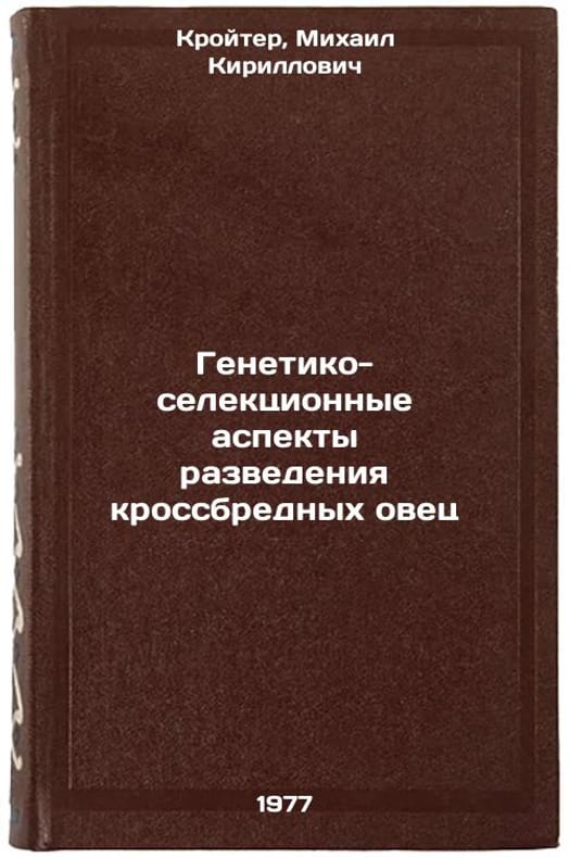 In Russian. Kreuter, Mikhail Kirillovich. Genetic and selection aspects of cross-breeding sheep. Almaty: Science, 1977. Genetiko-selektsionnye aspekty razvedeniya krossbrednykh ovets. In Russian /Genetic and selection aspects of cross-breeding sheep . All images are for identification of editions only. Several books of the same edition may be available. Please feel free to request photos of available books. SKU7647760
