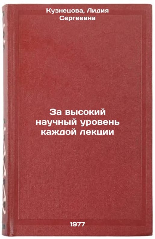 In Russian. Kuznetsova, Lidiya Sergeevna. For the high scientific level of each lecture. Leningrad: About Znanie of the RSFSR. Leningrad Organization, 1977. Za vysokiy nauchnyy uroven' kazhdoy lektsii. In Russian /For the high scientific quality of each lecture . All images are for identification of editions only. Several books of the same edition may be available. Please feel free to request photos of available books. SKU7647830