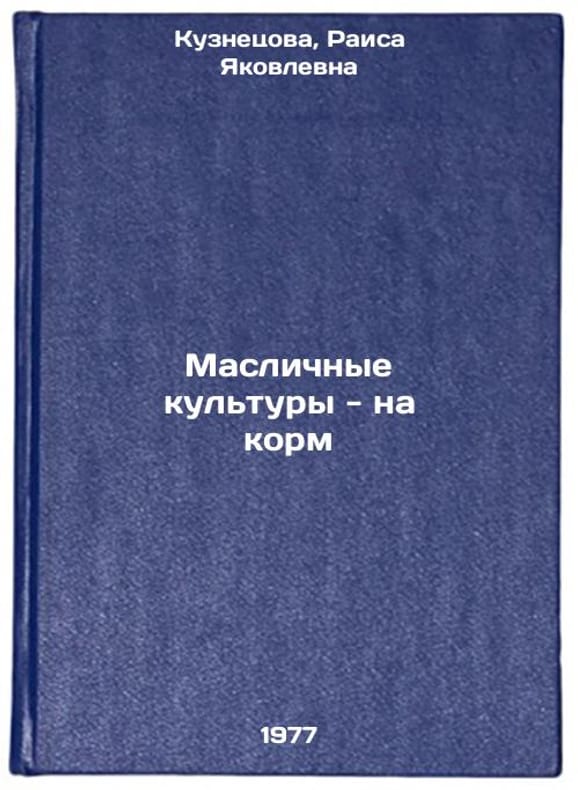 In Russian. Kuznetsova, Raisa Yakovlevna. Oil crops for fodder. Leningrad: Kolos. Leningrad detachment, 1977. All images are for identification of editions only. Several books of the same edition may be available. Please feel free to request photos of available books. SKU7647831