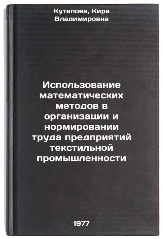 In Russian. Kutepova, Kira Vladimirovna. The Use of Mathematical Methods in the Organization and Standardization of Labor of Textile Industries. Moscow: 1977. Ispol'zovanie matematicheskikh metodov v organizatsii i normirovanii truda predpriyatiy tekstil'noy promyshlennosti. In Russian /The use of mathematical methods in the organization and rationing of the textile industry . All images are for identification of editions only. Several books of the same edition may be available. Please feel free to request photos of available books. SKU7647947