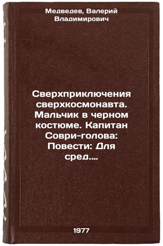 "In Russian. Medvedev, Valery Vladimirovich. The super-adventures of a supercosmonaut. A boy in a black suit. Captain Sauvri-head: Stories: For secondary school age]; Valery Medvedev; [Artist N. Tambovkin]. Moscow: Moscow: Worker, 1977. Sverkhpriklyucheniya sverkhkosmonavta. Mal'chik v chernom kostyume. Kapitan Sovri-golova: Povesti: Dlya sred. shkol'nogo vozrasta; Valeriy Medvedev; Khudozh. N. Tambovkin. In Russian /The super-adventures of a supercosmonaut. A boy in a black suit. Captain Sauvri-head: Stories: For secondary school age; Valery Medvedev; Artist N. Tambovkin . All images are for identification of editions only. Several books of the same edition may be available. Please feel free to request photos of available books. SKU7648110"