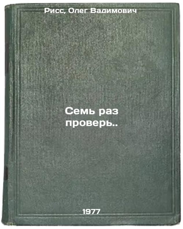 In Russian. Riess, Oleg Vadimovich. Check it out seven times. Moscow: The Book, 1977. All images are for identification of editions only. Several books of the same edition may be available. Please feel free to request photos of available books. SKU7648545