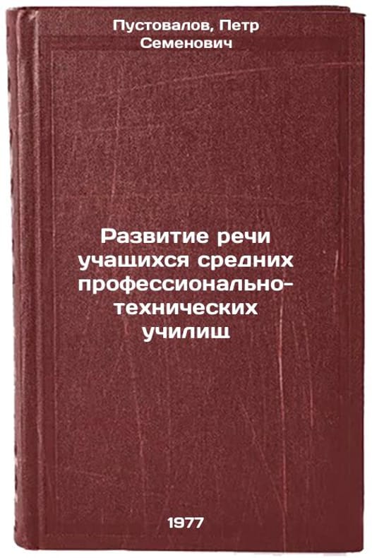 In Russian. Pustovalov, Petr Semenovich. Speech Development for Students of Secondary Vocational Schools. Moscow: Higher School, 1977. Razvitie rechi uchashchikhsya srednikh professional'no-tekhnicheskikh uchilishch. In Russian /Speech Development in Secondary Vocational Schools . All images are for identification of editions only. Several books of the same edition may be available. Please feel free to request photos of available books. SKU7648838