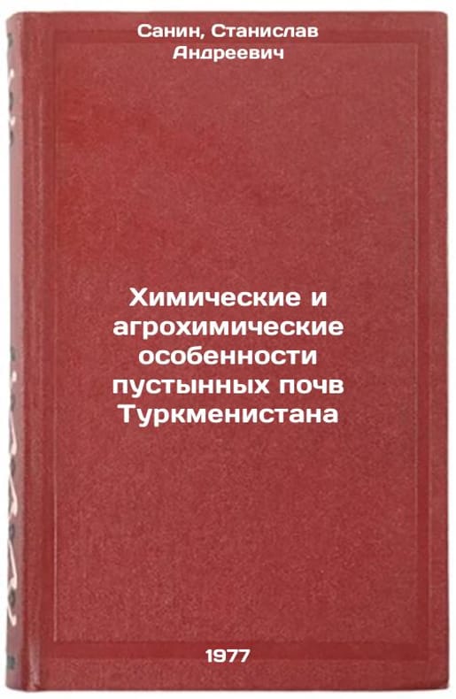 In Russian. Sanin, Stanislav Andreevich. Chemical and agrochemical features of Turkmenistan's desert soils. Ashgabat: Ylym, 1977. Khimicheskie i agrokhimicheskie osobennosti pustynnykh pochv Turkmenistana. In Russian /Chemical and agrochemical features of Turkmenistan's desert soils . All images are for identification of editions only. Several books of the same edition may be available. Please feel free to request photos of available books. SKU7650168