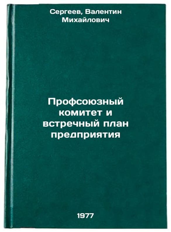 In Russian. Sergeev, Valentin Mikhailovich. Trade union committee and counter-plan of the enterprise. Moscow: Profizdat, 1977. Profsoyuznyy komitet i vstrechnyy plan predpriyatiya. In Russian /Trade union committee and enterprise counter-plan . All images are for identification of editions only. Several books of the same edition may be available. Please feel free to request photos of available books. SKU7650311