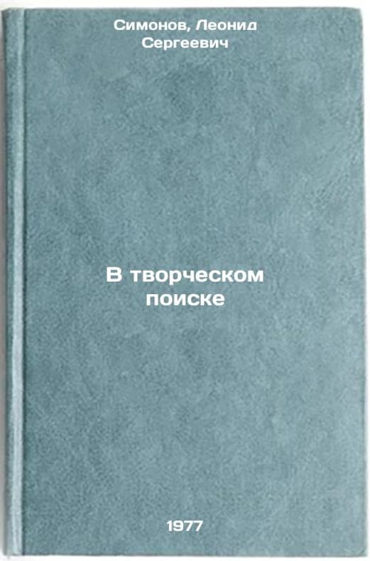 In Russian. Simonov, Leonid Sergeevich. In the creative search. Moscow: Light Industry, 1977. All images are for identification of editions only. Several books of the same edition may be available. Please feel free to request photos of available books. SKU7650378