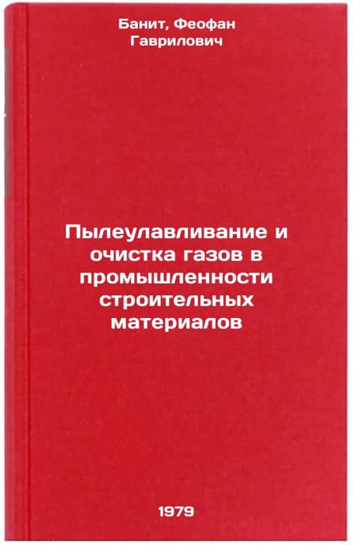 In Russian. Banit, Feofan Gavrilovich. Dust collection and gas purification in the construction materials industry. Moscow: Stroyizdat, 1979 Pyleulavlivanie i ochistka gazov v promyshlennosti stroitelnykh materialov/Dust collection and cleaning of gases in the building materials industry In Russian. All images are for identification of editions only. Several books of the same edition may be available. Please feel free to request photos of available books. SKU7650851