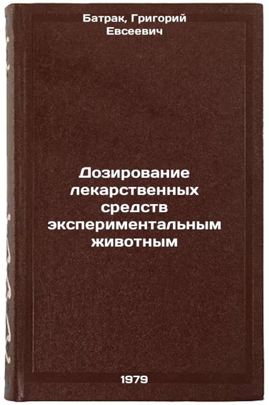 In Russian. Batrak, Grigory Evseevich. Dosage of drugs to experimental animals. Moscow: Medicine, 1979 Dozirovanie lekarstvennykh sredstv eksperimentalnym zhivotnym/Dosage of drugs to experimental animals In Russian. All images are for identification of editions only. Several books of the same edition may be available. Please feel free to request photos of available books. SKU7650956