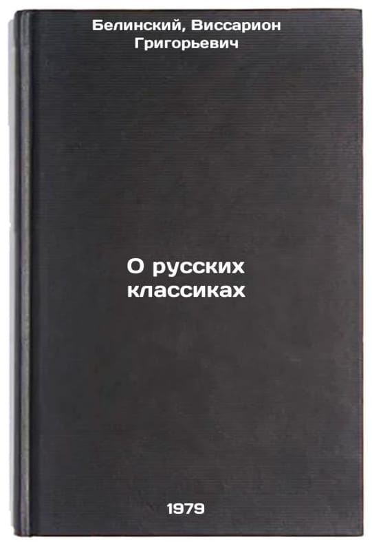 Belinsky V. On Russian Classics. In Russian /Belinskiy V. O russkikh klassikakh. M Wordlit. 1986. Contact us for details or to request photos of available books. Delivery of this book could take longer than normal due to additional handling time before shipping, and no rush delivery options are available. Please let us know if you have a specific date by which you need to receive your order. SKUalb461ed83a50f402ce