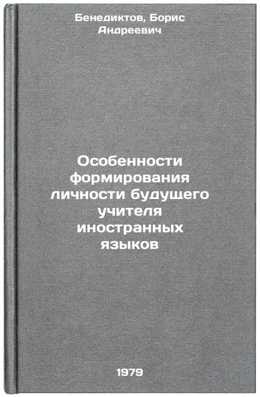 In Russian. Benediktov, Boris Andreevich. Peculiarities of the formation of the personality of a future foreign language teacher:. Minsk: Minsk. SPIIA, 1979 Osobennosti formirovaniya lichnosti budushchego uchitelya inostrannykh yazykov:/Peculiarities of the personality formation of a future foreign language teacher: In Russian. All images are for identification of editions only. Several books of the same edition may be available. Please feel free to request photos of available books. SKU990712