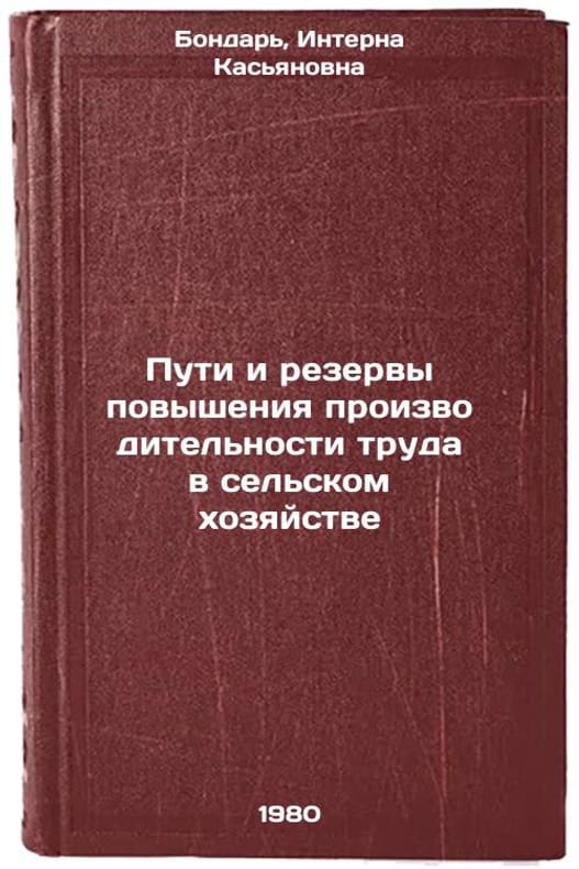 In Russian. Bondar, Interna Kasyanovna. Ways and Reserves to Increase Labor Productivity in Agriculture. Kyiv: The Knowledge of the Ukrainian SSR,. Puti i rezervy povysheniya proizvoditel'nosti truda v sel'skom khozyaystve. In Russian /Ways and Reserves to Increase Agricultural Productivity . All images are for identification of editions only. Several books of the same edition may be available. Please feel free to request photos of available books. SKU1002155