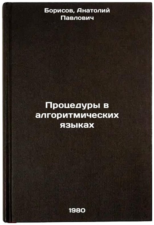 In Russian. Borisov, Anatoly Pavlovich. Procedures in Algorithmic Languages. Moscow: MISIS, 1979. Protsedury v algoritmicheskikh yazykakh. In Russian /Procedures in Algorithmic Languages . All images are for identification of editions only. Several books of the same edition may be available. Please feel free to request photos of available books. SKU7651748
