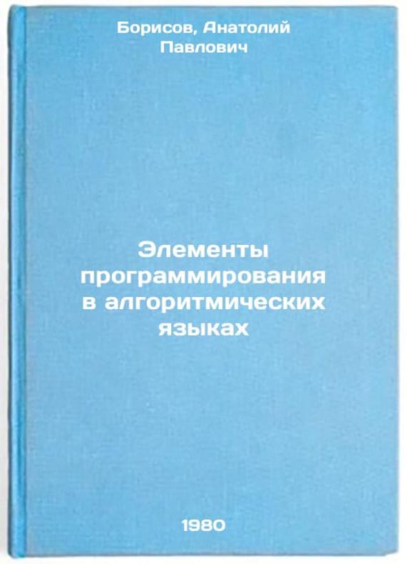 In Russian. Borisov, Anatoly Pavlovich. Elements of programming in algorithmic languages. Moscow: MISIS, 1979 (vol. 1980). Elementy programmirovaniya v algoritmicheskikh yazykakh. In Russian /Programming elements in algorithmic languages . All images are for identification of editions only. Several books of the same edition may be available. Please feel free to request photos of available books. SKU7651749