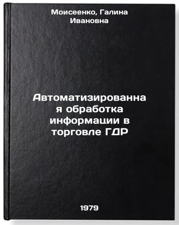In Russian. Moiseenko, Galina Ivanovna. Automated processing of information in trade of the GDR. Moscow: Statistics, 1979 Avtomatizirovannaya obrabotka informatsii v torgovle GDR/Automated Information Processing in GDR Trade In Russian. All images are for identification of editions only. Several books of the same edition may be available. Please feel free to request photos of available books. SKU7653786