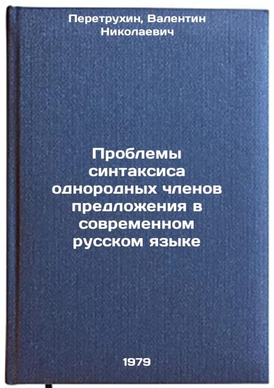 In Russian. Peretrukhin, Valentin Nikolaevich. Syntax problems of homogeneous sentence members in modern Russian. Voronezh: Publishing House of Voronezh Unta, 1979 Problemy sintaksisa odnorodnykh chlenov predlozheniya v sovremennom russkom yazyke/Syntax problems of homogeneous sentence members in modern Russian In Russian. All images are for identification of editions only. Several books of the same edition may be available. Please feel free to request photos of available books. SKU7655793