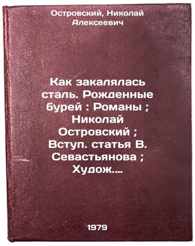 "In Russian. Ostrovsky, Nikolai Alekseevich. How steel hardened. Born by the Storm: Novels; Nikolai Ostrovsky; [Introductory article by V. Sevastyanov; Artist. V. Galdyaev]. Moscow: Mologovaya Guards, 1979 Kak zakalyalas stal. Rozhdennye burey: Romany; Nikolay Ostrovskiy; Vstup. statya V. Sevastyanova; Khudozh. V. Galdyaev/How Steel Tempered. Born by the Storm: Novels; Nikolai Ostrovsky; Introductory article by V. Sevastyanov; Artist. V. Galdyaev In Russian. All images are for identification of editions only. Several books of the same edition may be available. Please feel free to request photos of available books. SKU7656114"