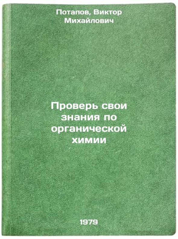 In Russian. Potapov, Viktor Mikhailovich. Test your knowledge of organic chemistry. Moscow: Enlightenment, 1979 Prover svoi znaniya po organicheskoy khimii/Test your knowledge of organic chemistry In Russian. All images are for identification of editions only. Several books of the same edition may be available. Please feel free to request photos of available books. SKU7656493
