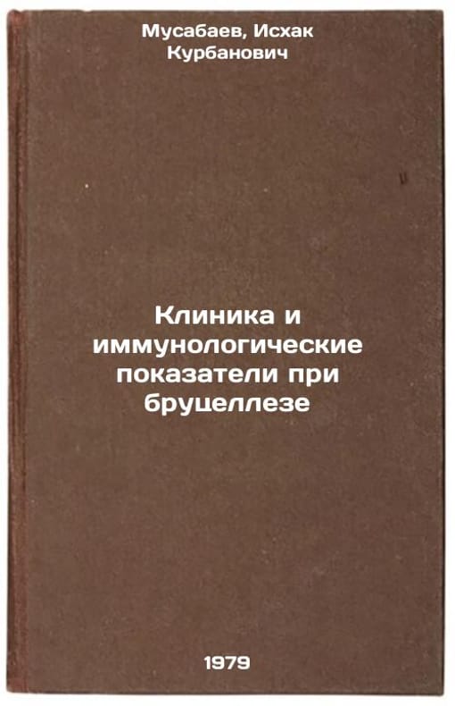 In Russian. Musabaev, Ishak Kurbanovich. Clinic and immunological indicators in brucellosis. Tashkent: Medicine, 1979 Klinika i immunologicheskie pokazateli pri brutselleze/Clinical and immunological indicators in brucellosis In Russian. All images are for identification of editions only. Several books of the same edition may be available. Please feel free to request photos of available books. SKU7659521