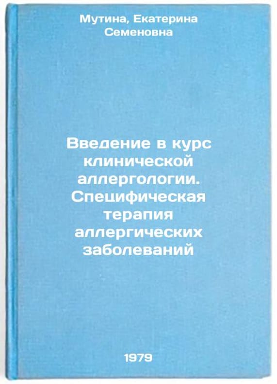 In Russian. Mutina, Ekaterina Semyonovna. Introduction to a course of clinical allergology. Specific therapy for allergic diseases. Moscow: COLIUV, 1979 Vvedenie v kurs klinicheskoy allergologii. Spetsificheskaya terapiya allergicheskikh zabolevaniy/Introduction to Clinical Allergy: Specific Therapy for Allergic Diseases In Russian. All images are for identification of editions only. Several books of the same edition may be available. Please feel free to request photos of available books. SKU7659541