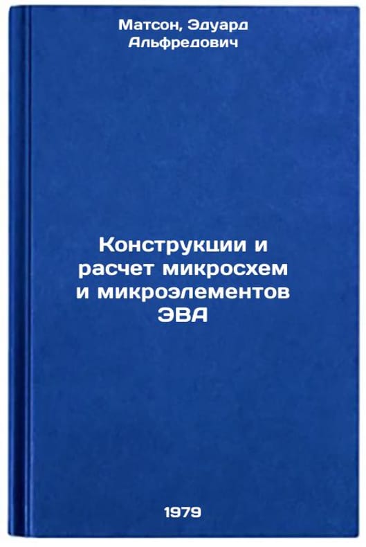 In Russian. Matson, Eduard Alfredovich. Design and Calculation of EVA Chips and Microelements. Minsk: The Higher School, 1979 Konstruktsii i raschet mikroskhem i mikroelementov EVA/Design and Calculation of EVA Chips and Micronutrients In Russian. All images are for identification of editions only. Several books of the same edition may be available. Please feel free to request photos of available books. SKU7659681