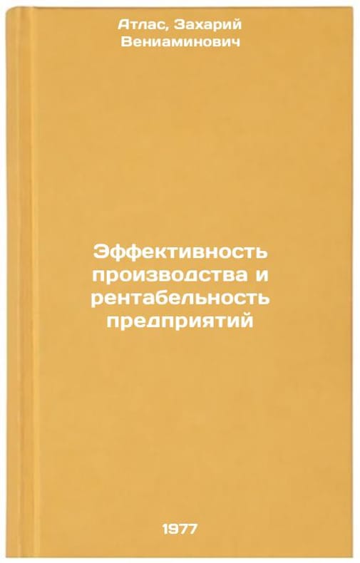 In Russian. Atlas, Zakhary Veniaminovich. Production efficiency and profitability of enterprises. Moscow: Thought, 1977. Effektivnost' proizvodstva i rentabel'nost' predpriyatiy. In Russian /Productive efficiency and profitability of enterprises . All images are for identification of editions only. Several books of the same edition may be available. Please feel free to request photos of available books. SKU7660142