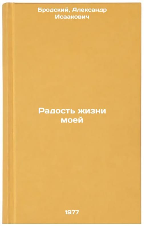 In Russian. Brodsky, Alexander Isaakovich. The joy of my life. Kyiv: Rad. the writer, 1977. All images are for identification of editions only. Several books of the same edition may be available. Please feel free to request photos of available books. SKU7660782