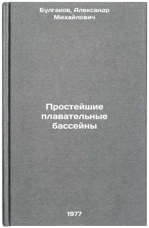 In Russian. Bulgakov, Alexander Mikhailovich. The simplest swimming pools. Moscow: Physical Culture and Sport, 1977. All images are for identification of editions only. Several books of the same edition may be available. Please feel free to request photos of available books. SKU7660852