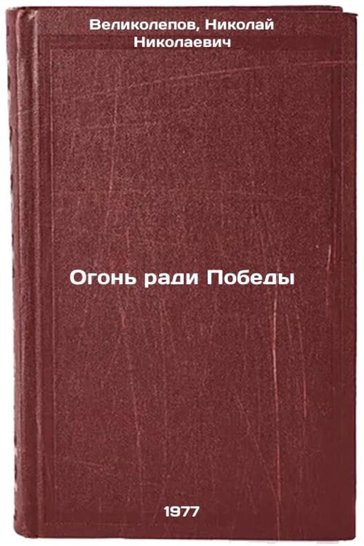 In Russian. Velikolepov, Nikolai Nikolaevich. Fire for the sake of Victory. Moscow: Voenizdat, 1977. All images are for identification of editions only. Several books of the same edition may be available. Please feel free to request photos of available books. SKU7661091