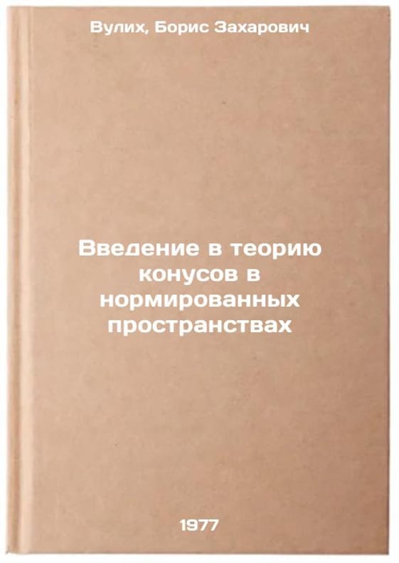 In Russian. Vulikh, Boris Zakharovich. An introduction to the theory of cones in normalized spaces. Kalinin: Kalinin un-t, 1977. Vvedenie v teoriyu konusov v normirovannykh prostranstvakh. In Russian /Introduction to Cone Theory in Normal Spaces . All images are for identification of editions only. Several books of the same edition may be available. Please feel free to request photos of available books. SKU7661421