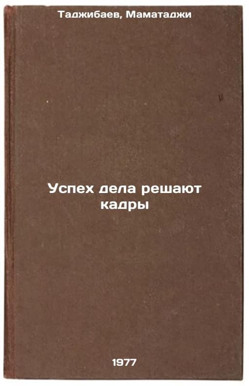 In Russian. Tadzhibaev, Mamataji. The success of the case is decided by the personnel. Tashkent: Uzbekistan, 1977. All images are for identification of editions only. Several books of the same edition may be available. Please feel free to request photos of available books. SKU7661465