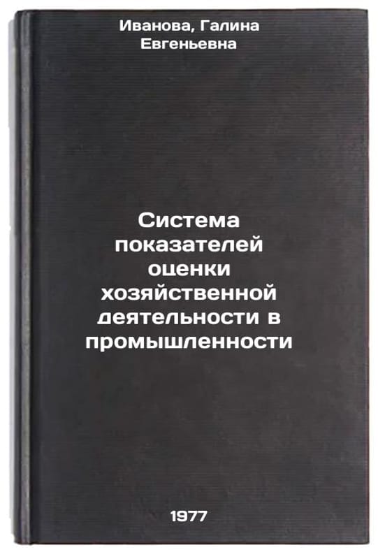 In Russian. Ivanova, Galina Evgenievna. System of indicators for the evaluation of economic activity in industry. Moscow: IUNH, 1977. Sistema pokazateley otsenki khozyaystvennoy deyatel'nosti v promyshlennosti. In Russian /Industrial Performance Measurement System . All images are for identification of editions only. Several books of the same edition may be available. Please feel free to request photos of available books. SKU7661683
