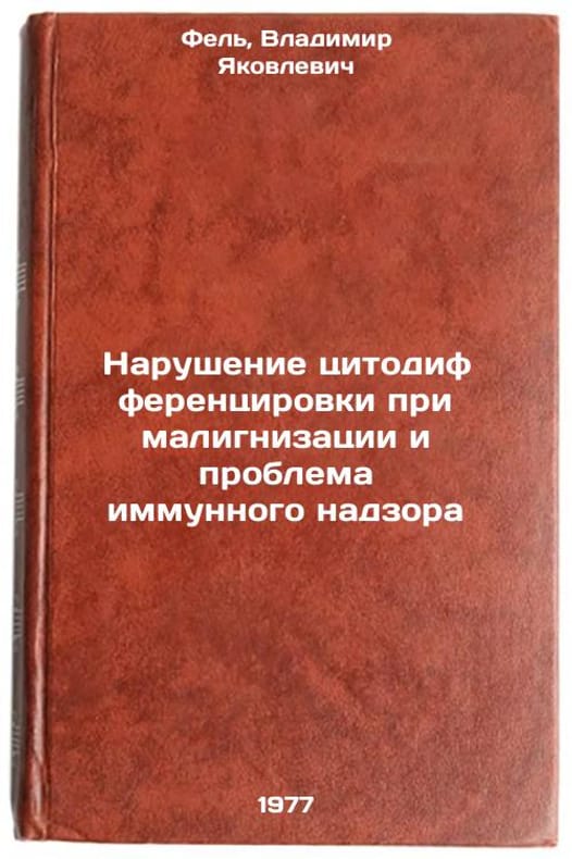 In Russian. Fel, Vladimir Yakovlevich. Cytodifferentiation disorders in malignisation and the problem of immune surveillance. Leningrad: Science. Leningrad Division, 1977. Narushenie tsitodifferentsirovki pri malignizatsii i problema immunnogo nadzora. In Russian /Cytodifferentiation disorders in malignisation and the problem of immune surveillance . All images are for identification of editions only. Several books of the same edition may be available. Please feel free to request photos of available books. SKU7662305