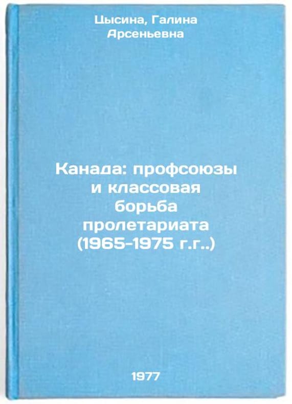 In Russian. Tsysina, Galina Arsenyevna. Canada: Trade Unions and the Class Struggle of the Proletariat (1965-1975). Moscow: Science, 1977. Kanada: profsoyuzy i klassovaya bor'ba proletariata (1965-1975 gg.). In Russian /Canada: Trade Unions and the Class Struggle of the Proletariat (1965-1975) . All images are for identification of editions only. Several books of the same edition may be available. Please feel free to request photos of available books. SKU7662606