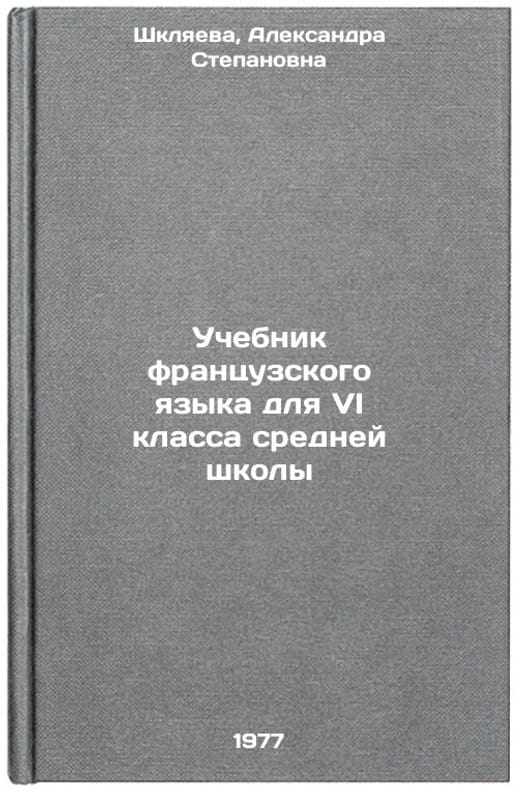 In Russian. Shklyaeva, Alexandra Stepanovna. A French textbook for the VI grade of secondary school. Moscow: Enlightenment, 1977. Uchebnik frantsuzskogo yazyka dlya VI klassa sredney shkoly. In Russian /French Language Textbook for Secondary VI . All images are for identification of editions only. Several books of the same edition may be available. Please feel free to request photos of available books. SKU7662711