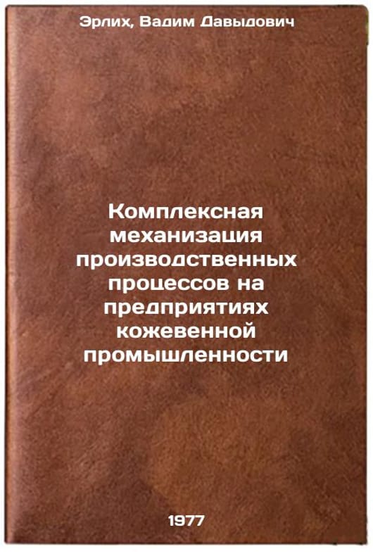 In Russian. Erlich, Vadim Davydovich. Complex mechanization of production processes in the leather industry. Moscow: Light Industry, 1977. Kompleksnaya mekhanizatsiya proizvodstvennykh protsessov na predpriyatiyakh kozhevennoy promyshlennosti. In Russian /Integrated mechanization of production processes in the leather industry . All images are for identification of editions only. Several books of the same edition may be available. Please feel free to request photos of available books. SKU7662749