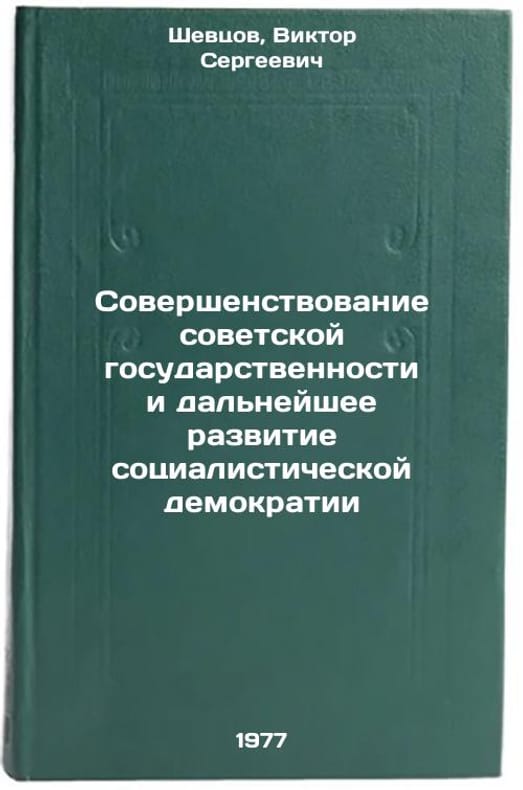 In Russian. Shevtsov, Viktor Sergeevich. Improvement of Soviet statehood and further development of socialist democracy. Moscow: Znanie, 1976. Sovershenstvovanie sovetskoy gosudarstvennosti i dal'neyshee razvitie sotsialisticheskoy demokratii. In Russian /Improvement of Soviet statehood and further development of socialist democracy . All images are for identification of editions only. Several books of the same edition may be available. Please feel free to request photos of available books. SKU6936073