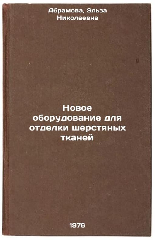 In Russian. Abramova, Elsa Nikolaevna. New equipment for finishing wool fabrics. Moscow: Light Industry, 1976. Novoe oborudovanie dlya otdelki sherstyanykh tkaney. In Russian /New equipment for finishing wool fabrics . All images are for identification of editions only. Several books of the same edition may be available. Please feel free to request photos of available books. SKU7663445