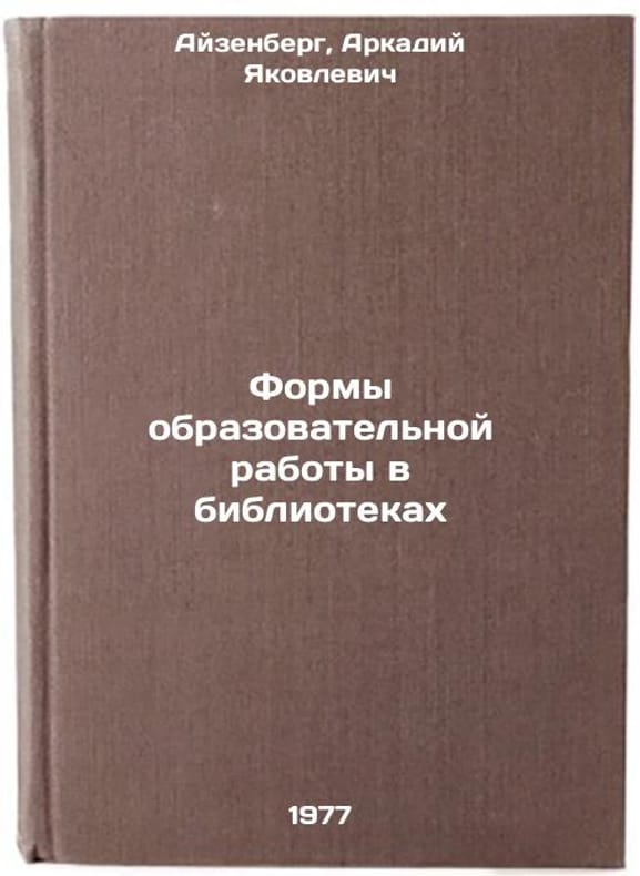 In Russian. Eisenberg, Arkady Yakovlevich. Forms of Educational Work in Libraries. Moscow: IPCC, 1976 (edited 1977). Formy obrazovatel'noy raboty v bibliotekakh. In Russian /Forms of educational work in libraries . All images are for identification of editions only. Several books of the same edition may be available. Please feel free to request photos of available books. SKU7663582