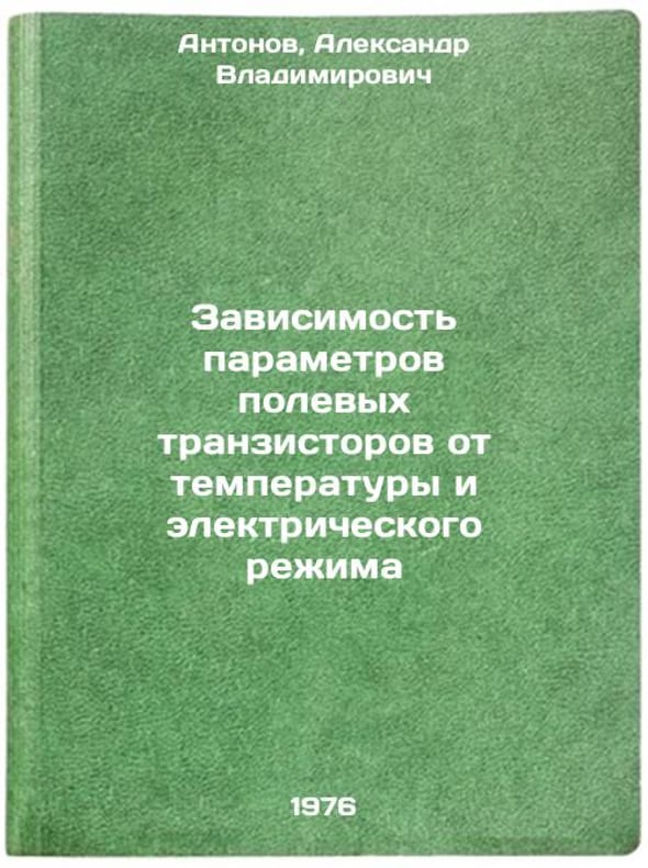 In Russian. Antonov, Alexander Vladimirovich. Field Transistor Parameters Dependence on Temperature and Electric Mode. Dubna: JINR, 1976. Zavisimost' parametrov polevykh tranzistorov ot temperatury i elektricheskogo rezhima. In Russian /Field transistor parameters depend on temperature and electrical mode . All images are for identification of editions only. Several books of the same edition may be available. Please feel free to request photos of available books. SKU7663912