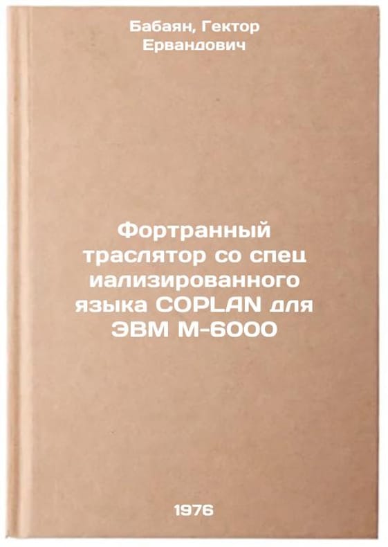 In Russian. Babayan, Hector Ervandovich. Format tracer from the specialized COPLAN language for the M-6000 computer. Dubna: JINR, 1976. Fortrannyy traslyator so spetsializirovannogo yazyka COPLAN dlya EVM M-6000. In Russian /Format tracer from the specialized COPLAN language for M-6000 . All images are for identification of editions only. Several books of the same edition may be available. Please feel free to request photos of available books. SKU7664154