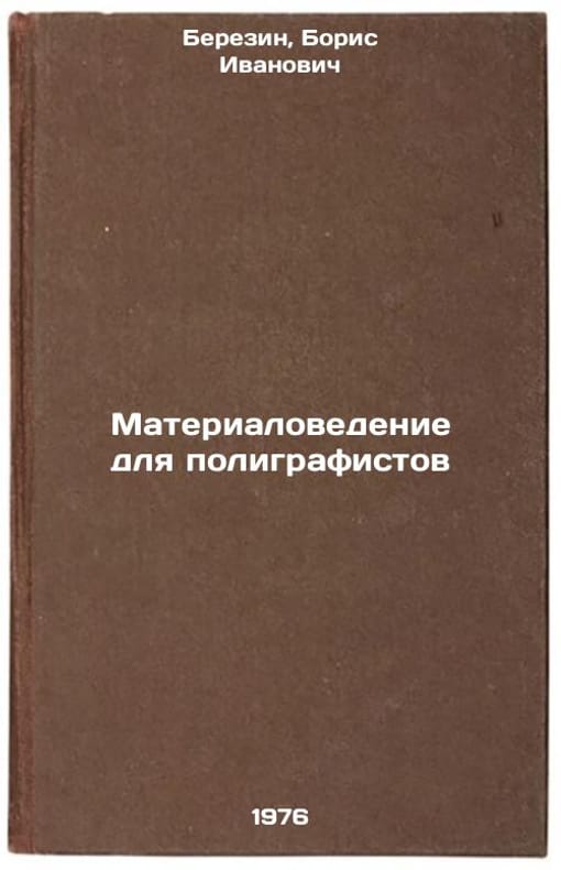 In Russian. Berezin, Boris Ivanovich. Materials Science for Polygraphers. Moscow: Book, 1976. Materialovedenie dlya poligrafistov. In Russian /Material Science for Polygraphers . All images are for identification of editions only. Several books of the same edition may be available. Please feel free to request photos of available books. SKU7664505