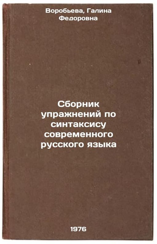 In Russian. Vorobyova, Galina Fedorovna. Compilation of exercises on the syntax of the modern Russian language. Moscow: Russian Language, 1976. Sbornik uprazhneniy po sintaksisu sovremennogo russkogo yazyka. In Russian /Compilation of exercises on syntax of modern Russian language . All images are for identification of editions only. Several books of the same edition may be available. Please feel free to request photos of available books. SKU7665655