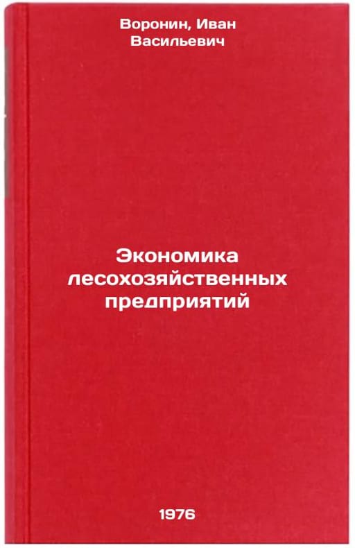 In Russian. Voronin, Ivan Vasilievich. Economics of forestry enterprises. Moscow: Forest industry, 1976. Ekonomika lesokhozyaystvennykh predpriyatiy. In Russian /Economics of forest enterprises . All images are for identification of editions only. Several books of the same edition may be available. Please feel free to request photos of available books. SKU7665662