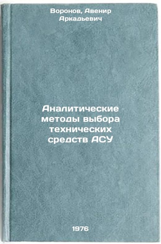 In Russian. Voronov, Avenir Arkadevich. Analytical Methods of Selection of ACS Technical Methods. Moscow: Science, 1976. Analiticheskie metody vybora tekhnicheskikh sredstv ASU. In Russian /Analytical Methods for Selecting ACS Technical Methods . All images are for identification of editions only. Several books of the same edition may be available. Please feel free to request photos of available books. SKU7665670