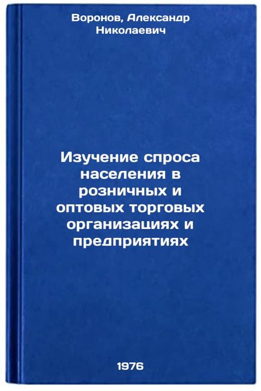 In Russian. Voronov, Alexander Nikolaevich. Study of population demand in retail and wholesale trade organizations and enterprises. Moscow: 1976. Izuchenie sprosa naseleniya v roznichnykh i optovykh torgovykh organizatsiyakh i predpriyatiyakh. In Russian /Survey of population demand in retail and wholesale trade organizations and enterprises . All images are for identification of editions only. Several books of the same edition may be available. Please feel free to request photos of available books. SKU7665671