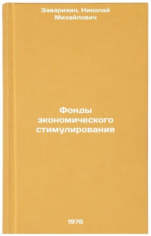 In Russian. Zavarikhin, Nikolai Mikhailovich. Economic Stimulus Funds. Moscow: Economics, 1976. All images are for identification of editions only. Several books of the same edition may be available. Please feel free to request photos of available books. SKU7665838