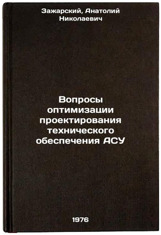 In Russian. Zazharsky, Anatoly Nikolaevich. Issues of optimization of design of technical support of automatic automatic control systems. Moscow: Central Research Institute of Instrumentation and Technology, 1976. Voprosy optimizatsii proektirovaniya tekhnicheskogo obespecheniya ASU. In Russian /Issues of optimization of design of ACS technical support . All images are for identification of editions only. Several books of the same edition may be available. Please feel free to request photos of available books. SKU7665874