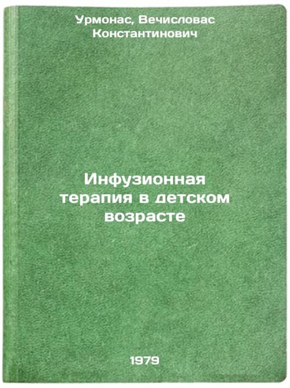 In Russian. Urmonas, Vechislovas Konstantinovich. Infusion therapy in childhood. Vilnius: Higher and Secondary Special Education of the USSR, 1979 All images are for identification of editions only. Several books of the same edition may be available. Please feel free to request photos of available books. SKU7666774